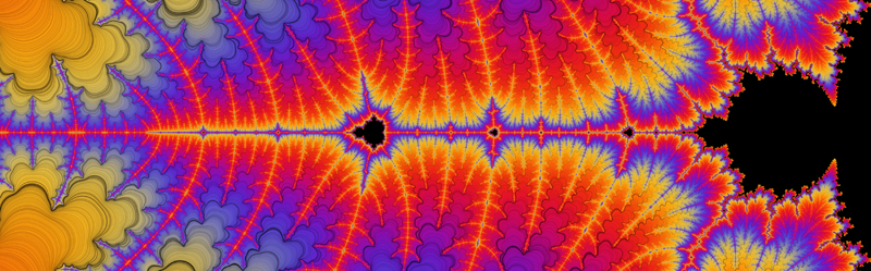 What astounded me, was the simplicity of the equation, compared to the complexity of the plot. The equation is just a handful characters which describe a sequence. (Zn+1 is the next value, Zn is the last value, c is a constant. Each time we get the next value, we simple square the pervious value and add the constant. The plot shows sequences for different values of c. Example)